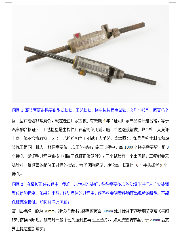 問題1 灌漿套筒進(jìn)場要做型式檢驗(yàn),工藝檢驗(yàn),接頭抗拉強(qiáng)度試驗(yàn),這幾個都是一回事嗎?