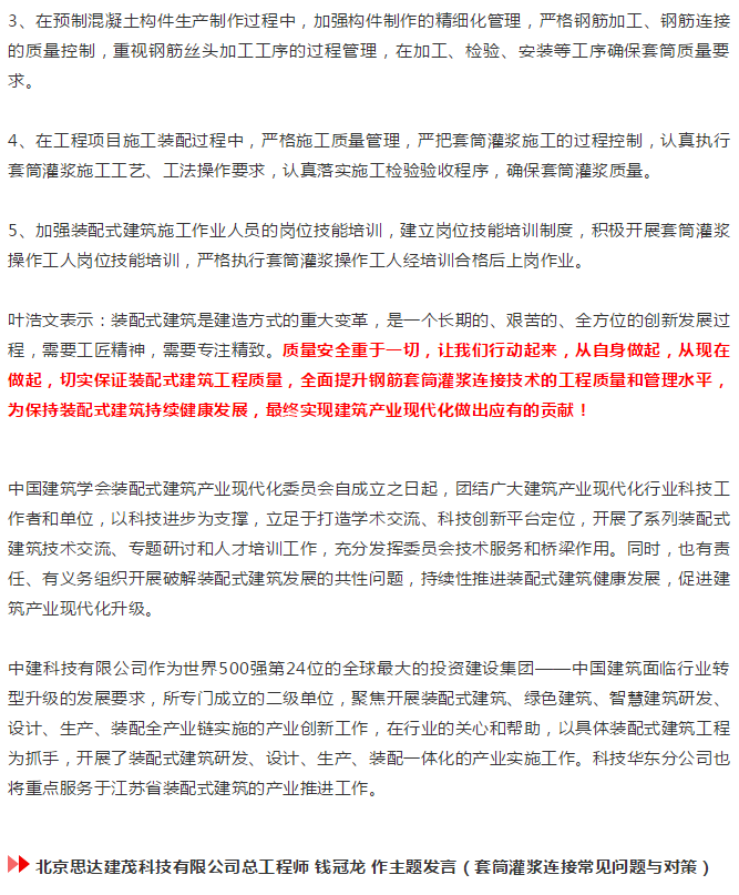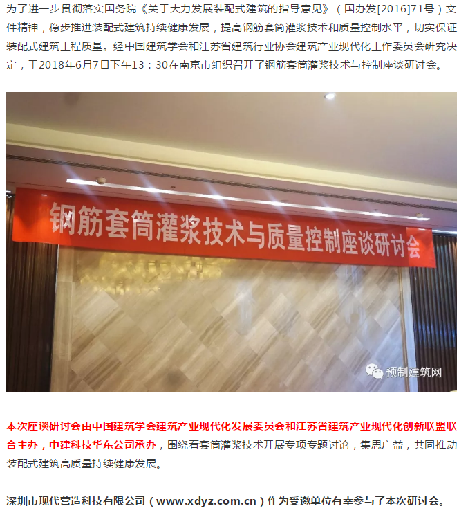 “鋼筋套筒灌漿技術與質量控制座談研討會”在南京圓滿召開!