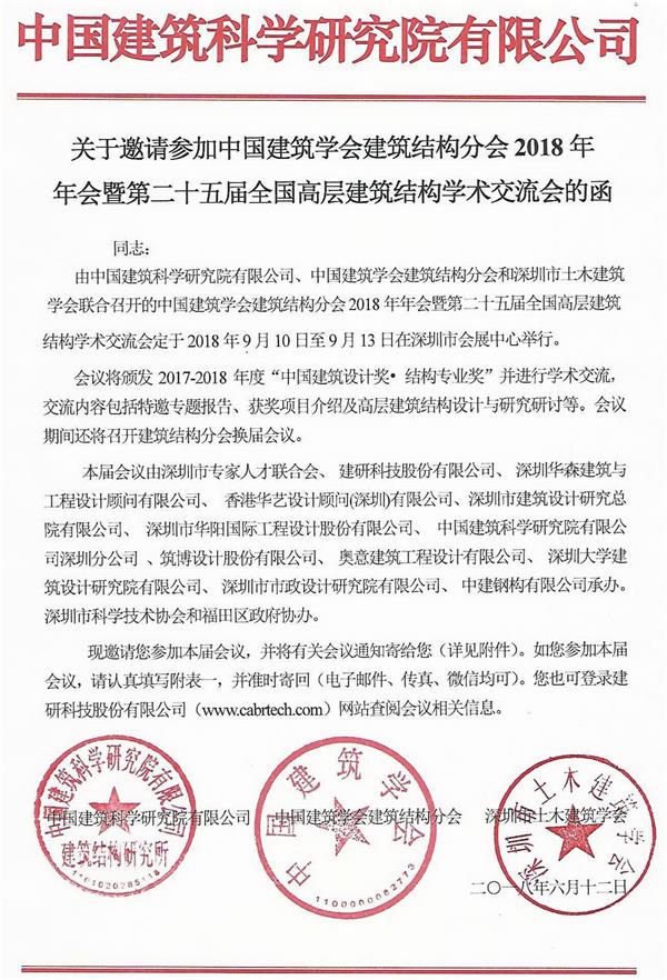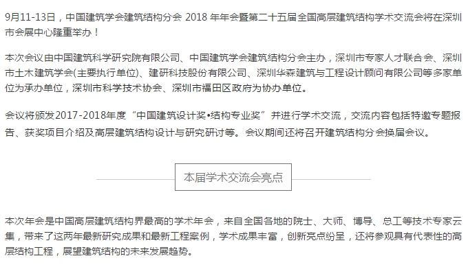 中國建筑學會建筑結構分會2018年年會暨第二十五屆全國高層建筑 結構學術交流會將于9月10-13日深圳召開