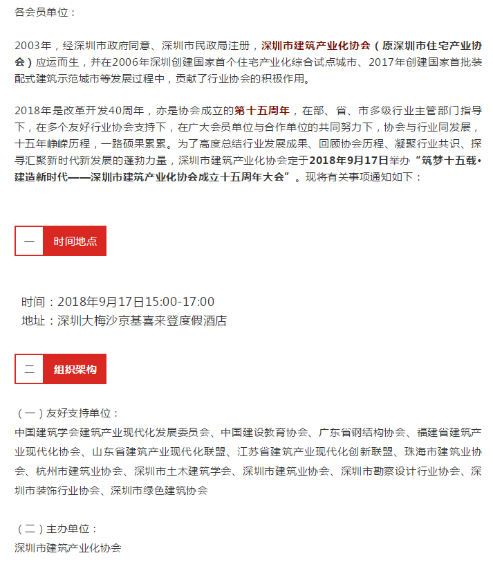 筑夢十五載·建造新時代—— 深圳市建筑產業化協會成立十五周年大會將啟!